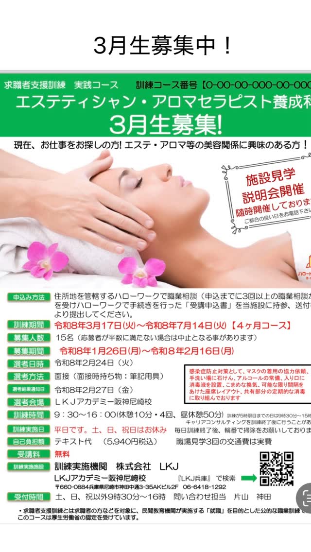 兵庫尼崎で、エステの職業訓練/エステスクールならLKJアカデミー