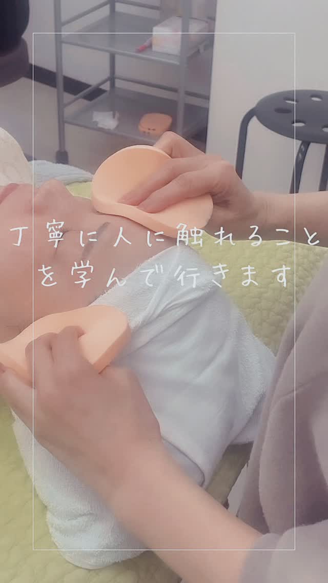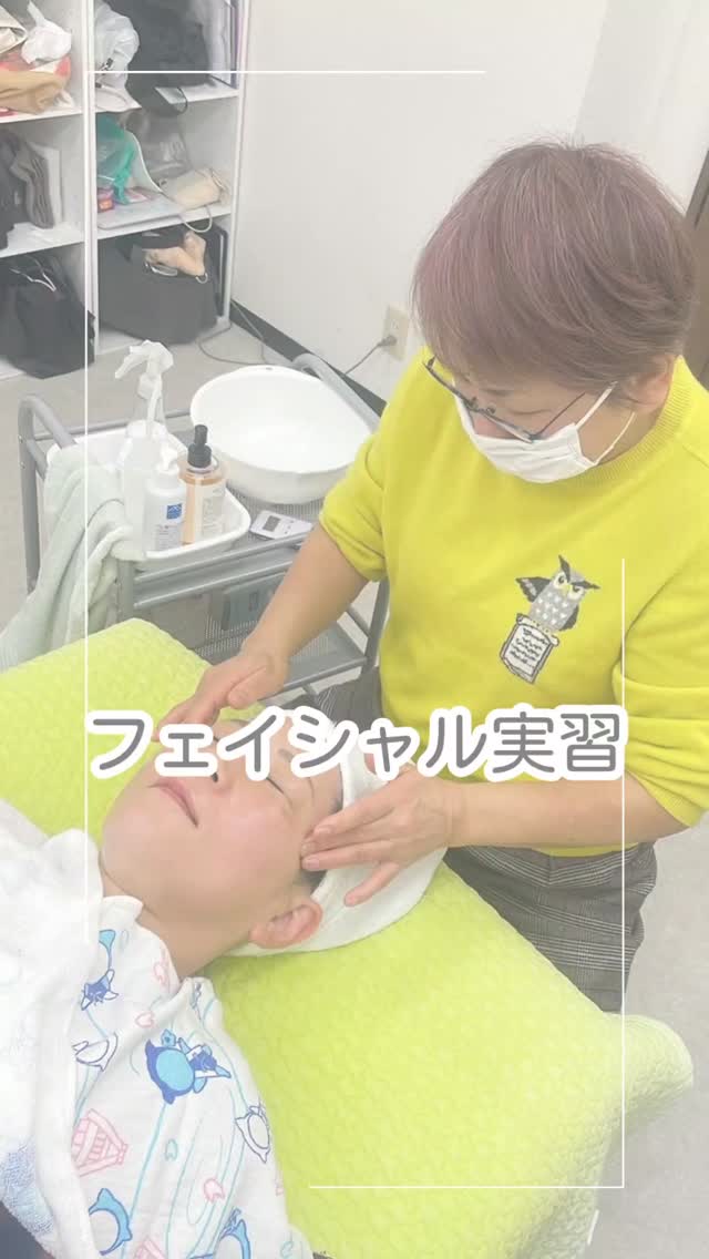 フェイシャル実習では、より丁寧にお肌に触れる事を学びます。