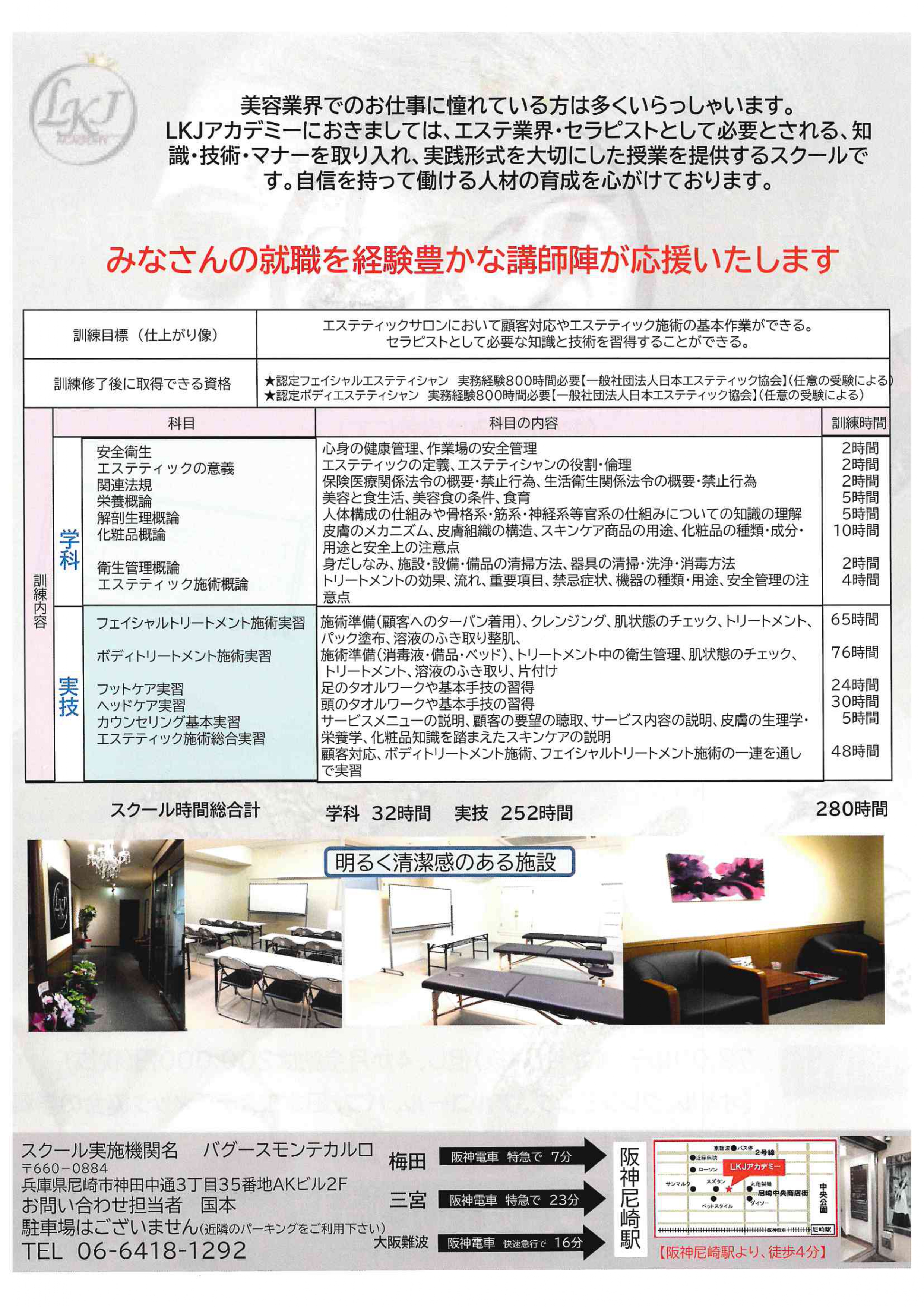 1時間1,500円、1日7,000円、1か月78,000円、4か月全納時200,000円(全て税抜)1か月・4か月全納の方はオイル・クレンジング・アルコール・パフ・教科書は含まれております